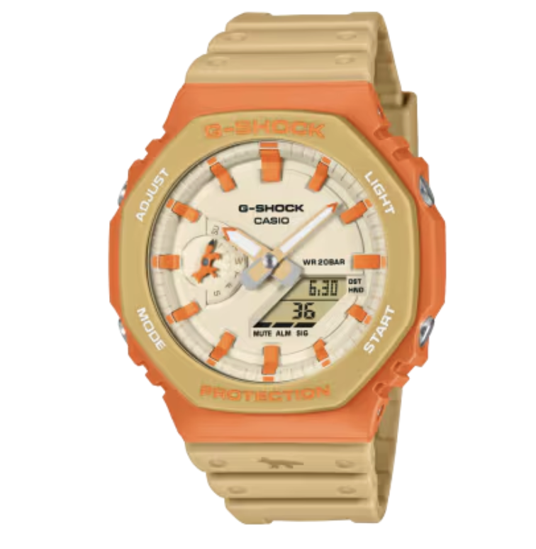 นาฬิการุ่น GA-2100 ซึ่งเป็นดาวเด่นในวงการสตรีทแวร์ ได้รับการปรับโฉมให้เข้ากับลวดลายและโทนสีเฉพาะตัว โดยใช้ชุดสี "Camaieu" (เป็นเทคนิคการใช้สีโทนเดียวกันหรือสีกลางแบบไล่ระดับ) ที่ได้รับแรงบันดาลใจมาจากสถาปัตยกรรม Haussmannian อันเป็นเอกลักษณ์ของกรุงปารีส (อาคารหินสีครีม/สีน้ำตาลอ่อน)